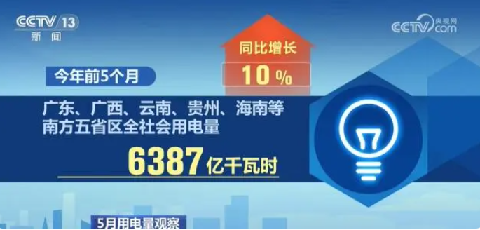 央視網(wǎng)消息:用電量數據一直被看作經(jīng)濟運行的“晴雨表”,從國家發(fā)展改革委等部門(mén)近日公布的數據中可以看到,5月份,我國東、中、西部及東北地區全社會(huì )用電量均實(shí)現正增長(cháng),電力消費延續平穩較快增長(cháng)勢頭。